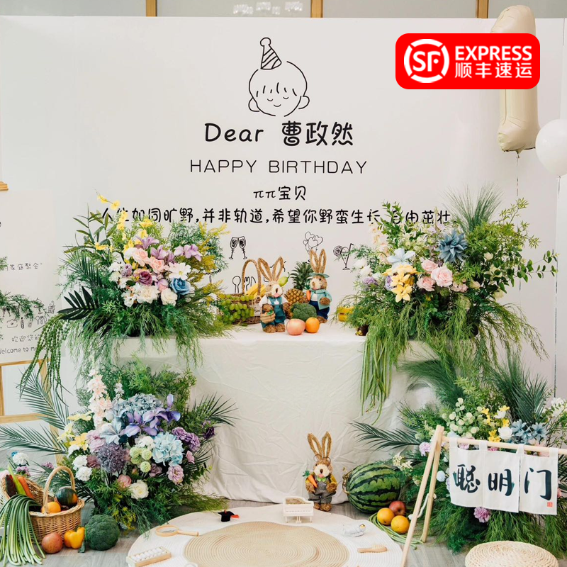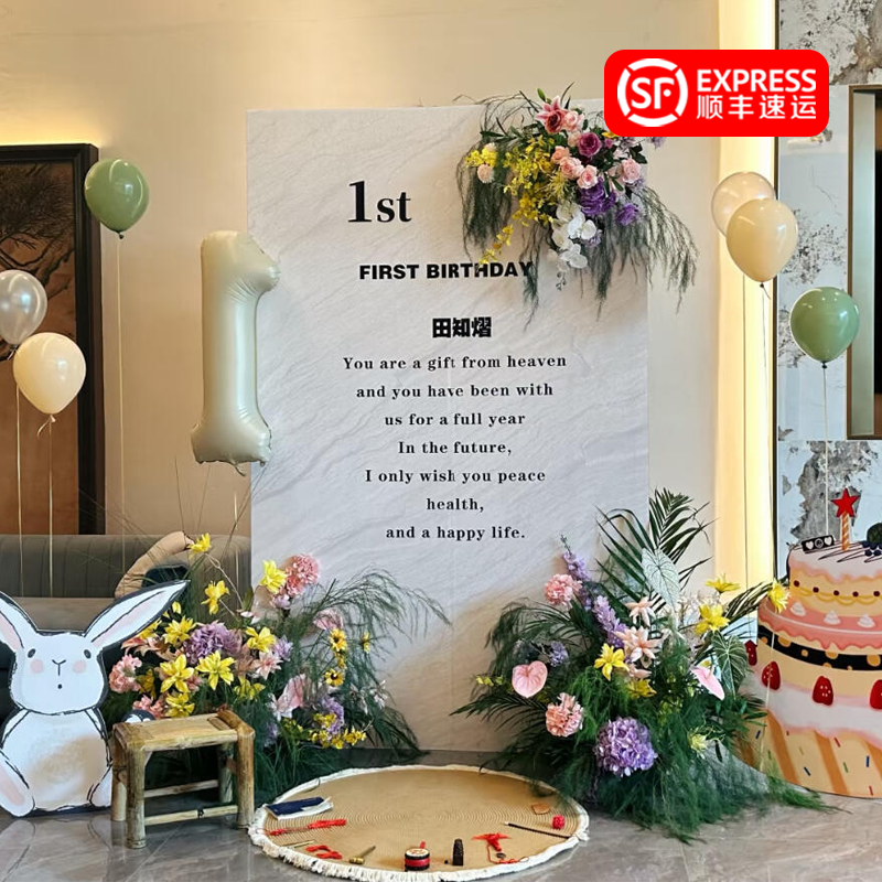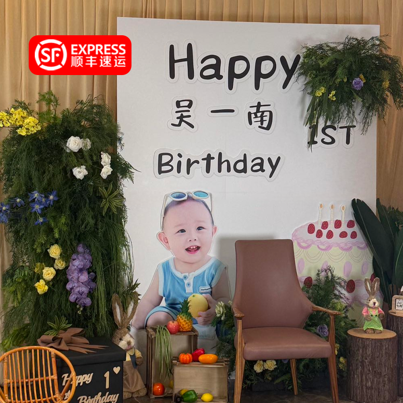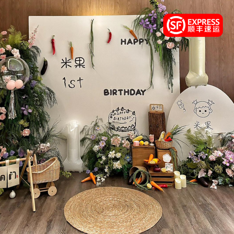 韩系宝宝百日宴场景布置背景墙韩式ins一周岁生日仪式感KT板定制