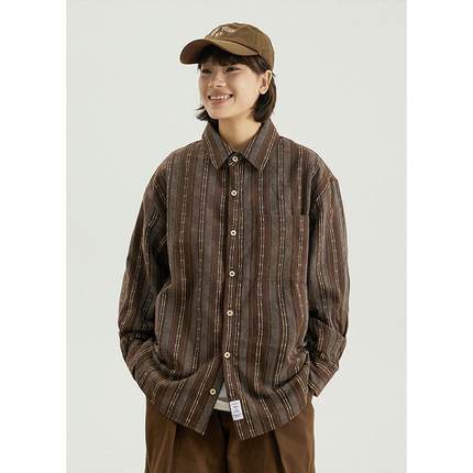 GoodNorth 2025新款日系文艺复古竖条纹长袖衬衫男女同款宽松衬衣