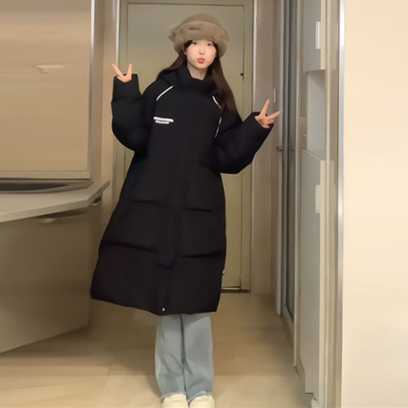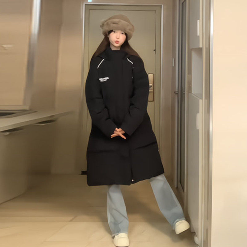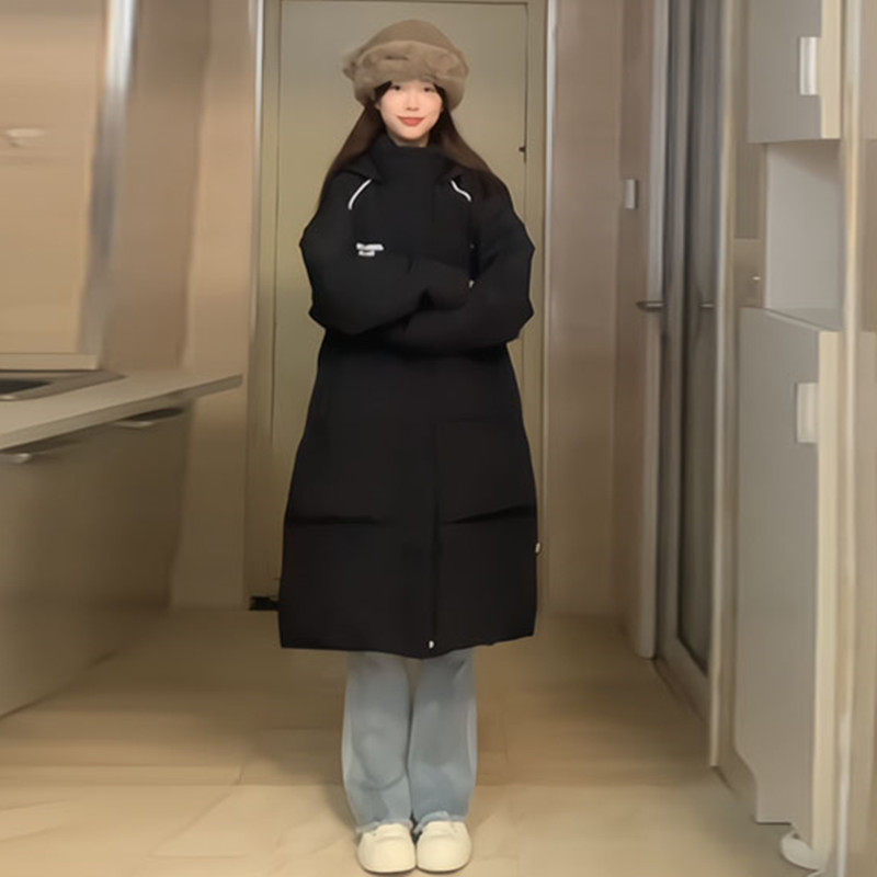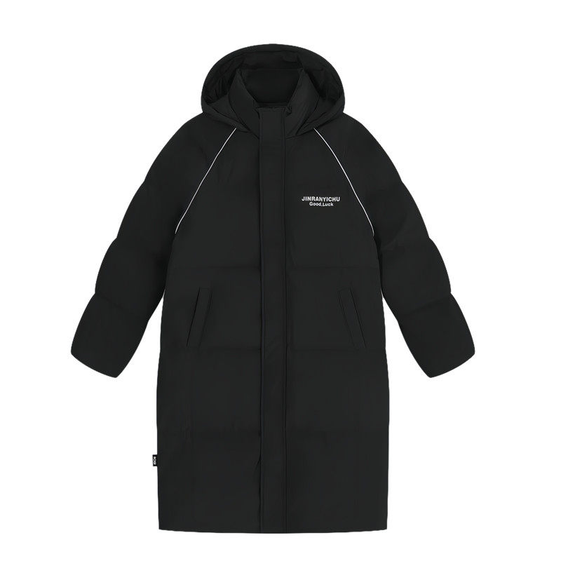 韩国高级感连帽字母羽绒服女冬加厚2025年新款长款过膝白鸭绒外套