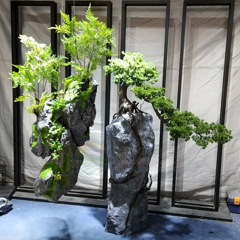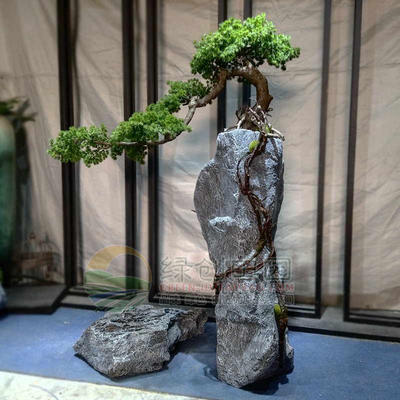 玻璃钢仿真石头枯山水禅意松定制工程造景园林园艺装饰摆件假山石