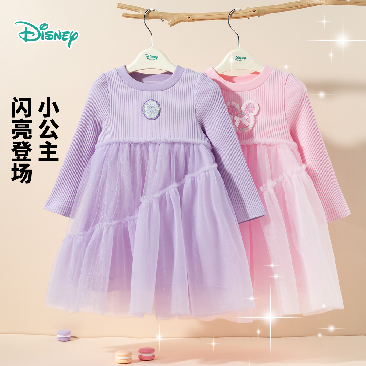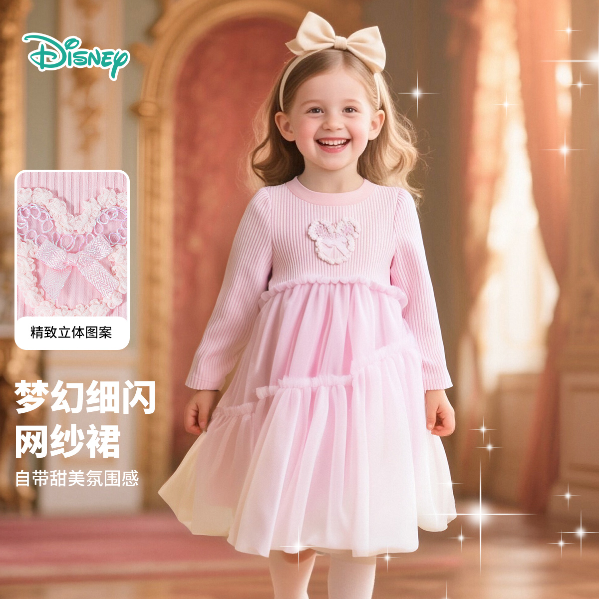 迪士尼童装女童长袖连衣裙2025秋季新品女孩公主裙洋气儿童打底裙