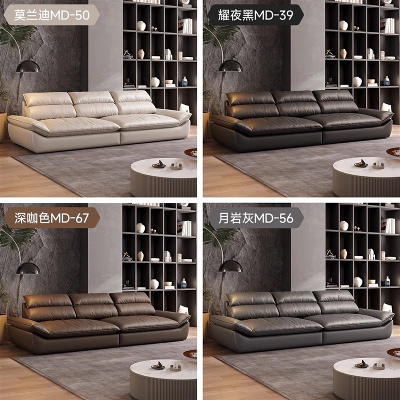 奶油风帆船沙发现代客厅办公意式极简直排皮艺沙发大小户型组合