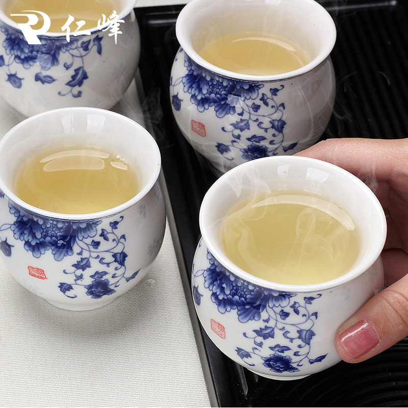 仁峰功夫小茶杯茶盏茶碗陶瓷茶具家用品茗杯青花瓷泡茶紫砂主人杯