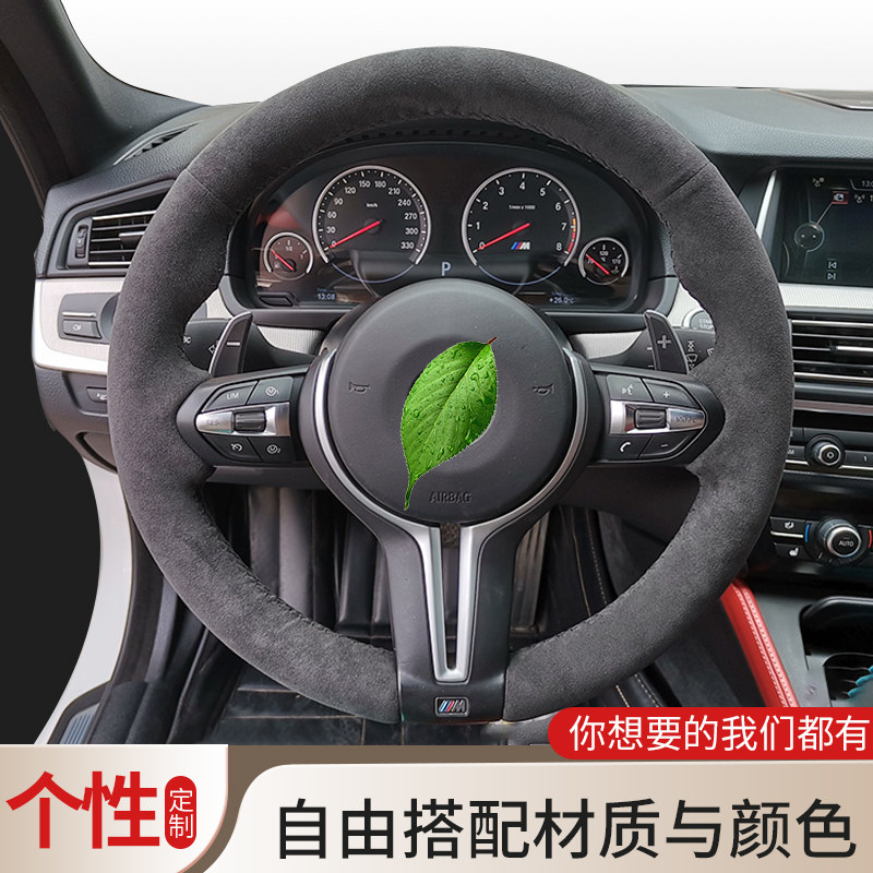 Alcantara翻毛皮方向盘套汽车防滑吸汗把套适用于宝马5系7系RS3系