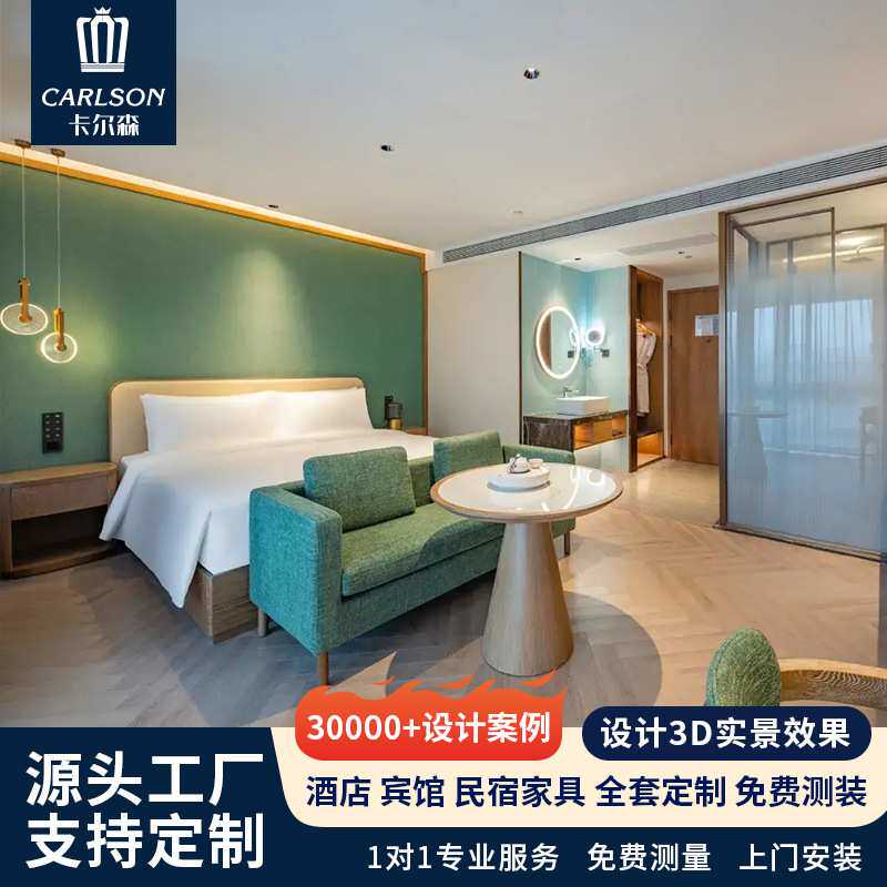 卡尔森小清新酒店套房标间全套家具大床样板房成套固装木饰面家具