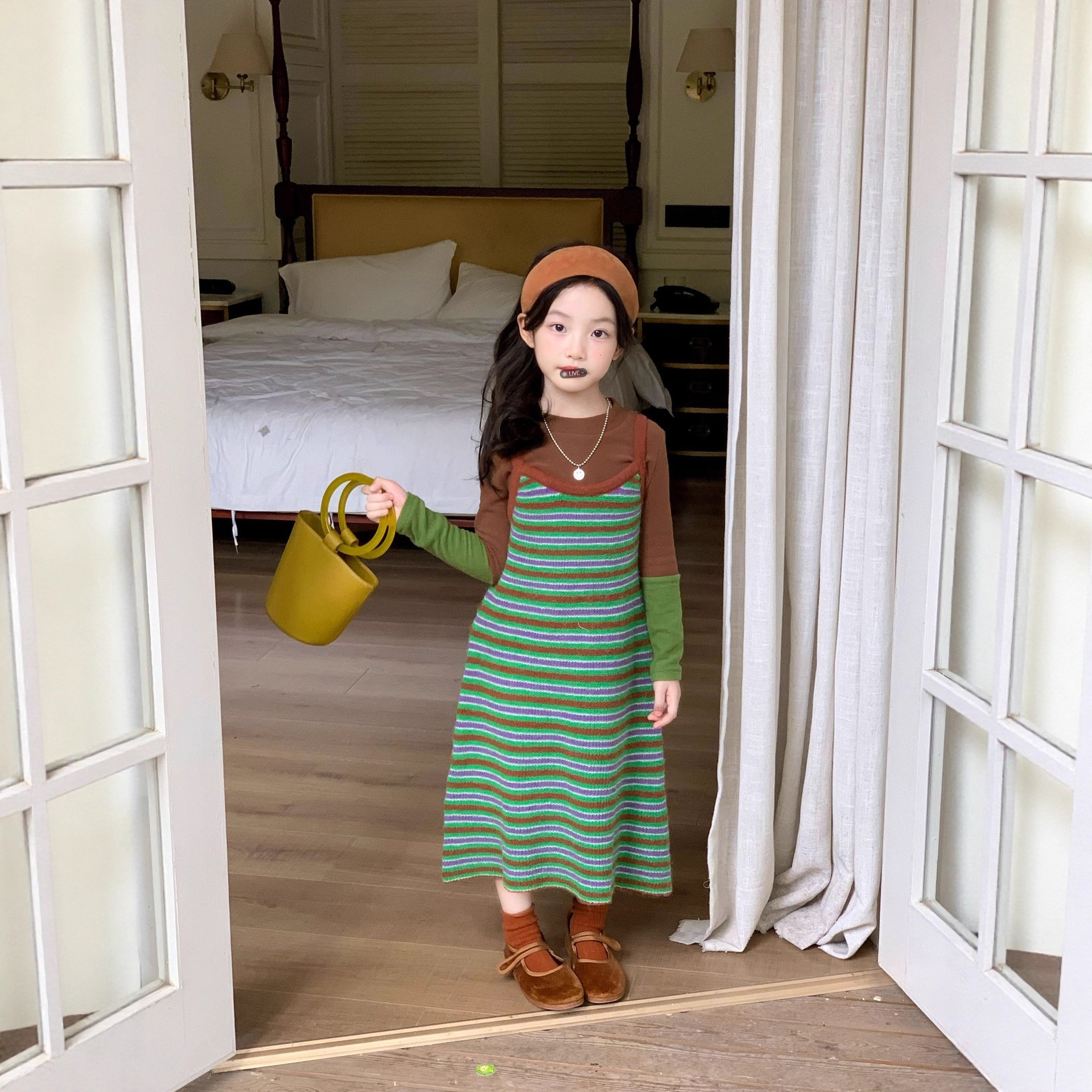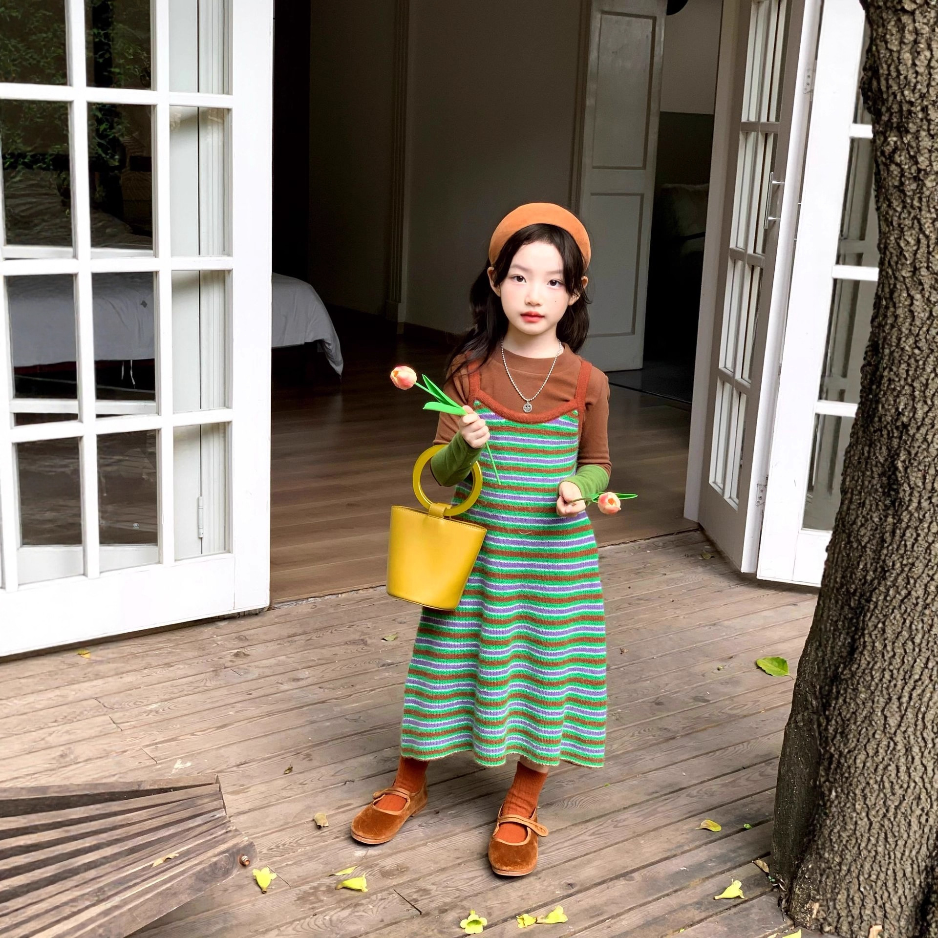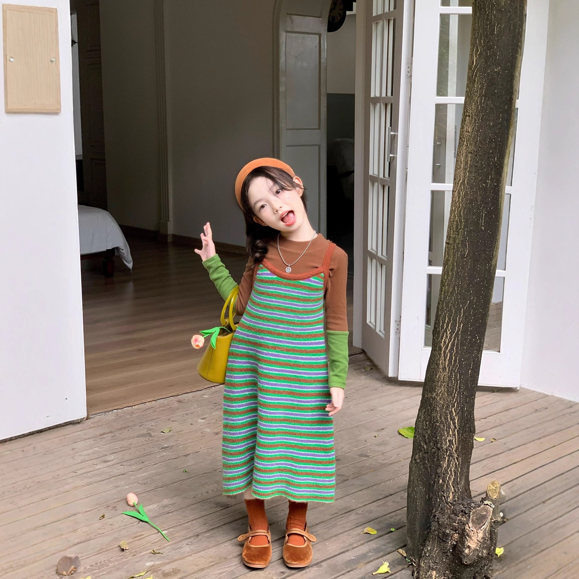 TOTObaby2025秋冬新款女童韩版洋气撞色条纹针织连衣裙百搭毛线裙