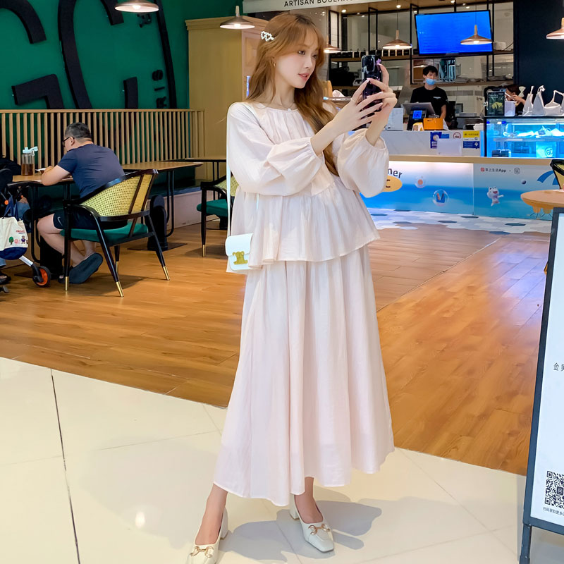 孕妇装2023秋季新款中式甜美温柔假两件长袖孕妇裙宽松显瘦连衣裙