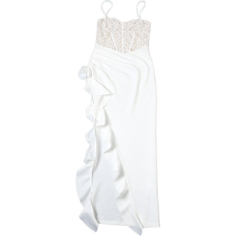 SylCue法式辣妹风蕾丝拼接设计感修身吊带连衣裙女性感挂脖短裙子