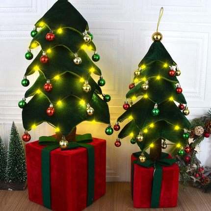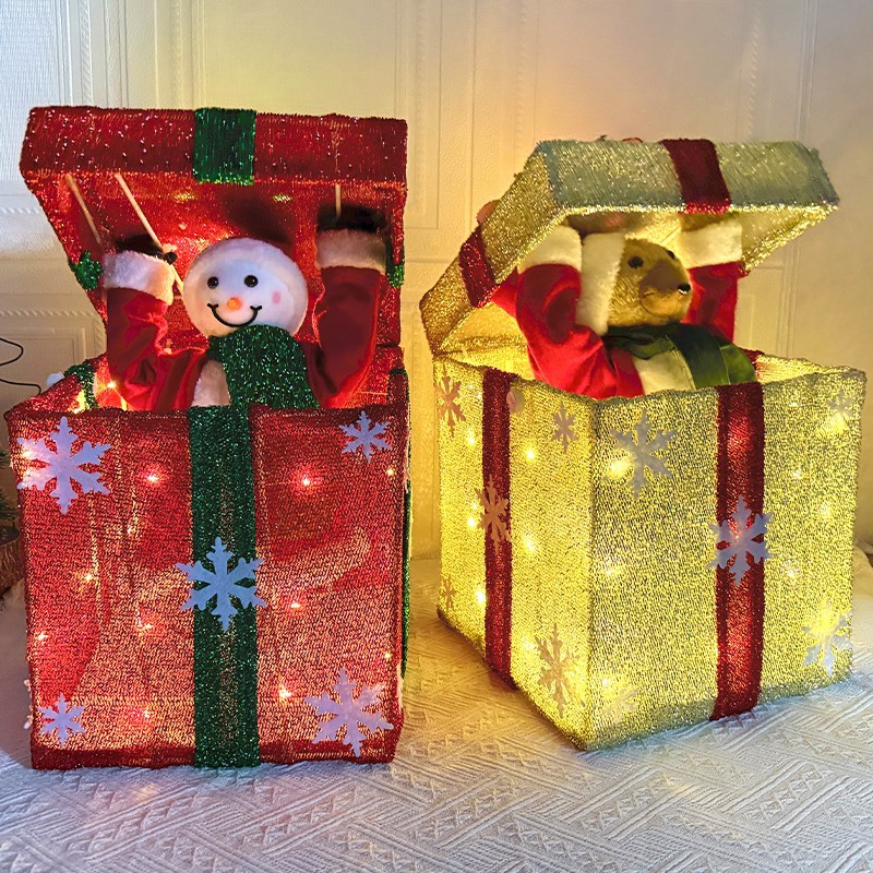 圣诞节装饰品开合礼物盒音乐盒可伸缩摆件圣诞树发光摆设橱窗桌面