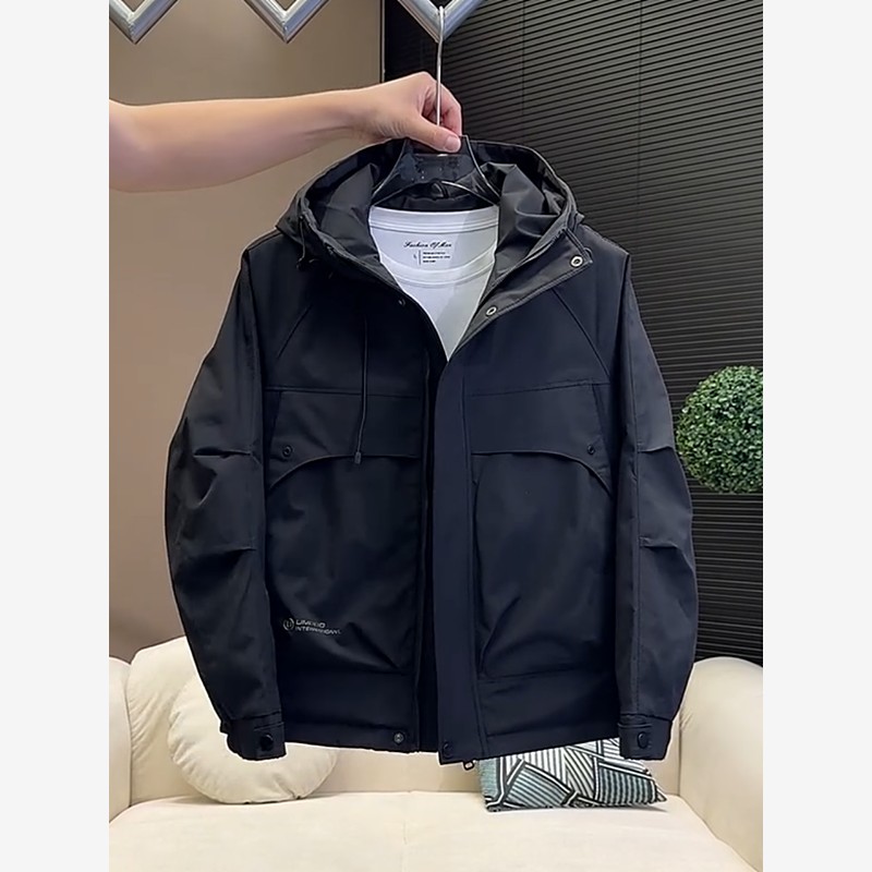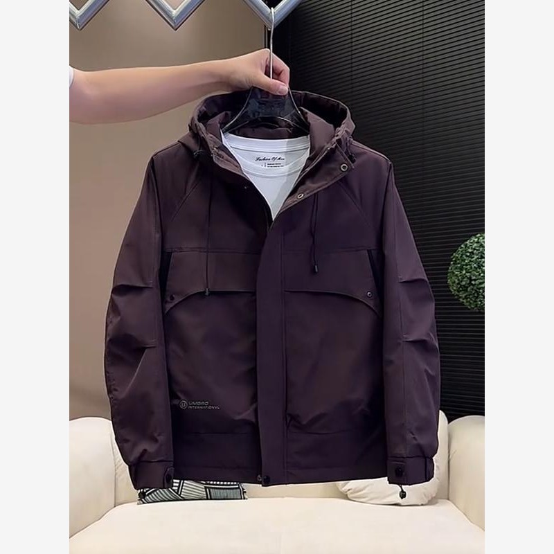 春秋新款潮牌工装连帽外套冲锋衣男宽松百搭户外休闲防风夹克上衣