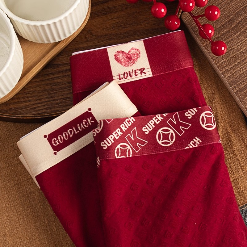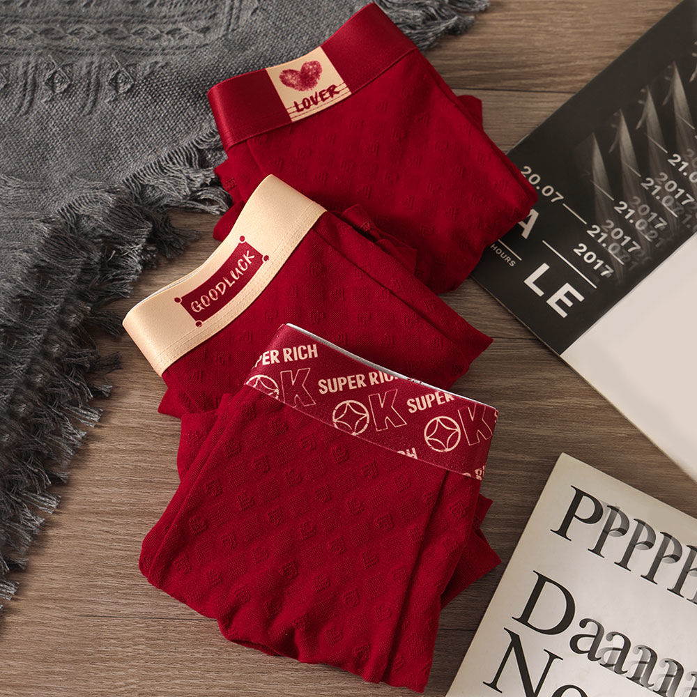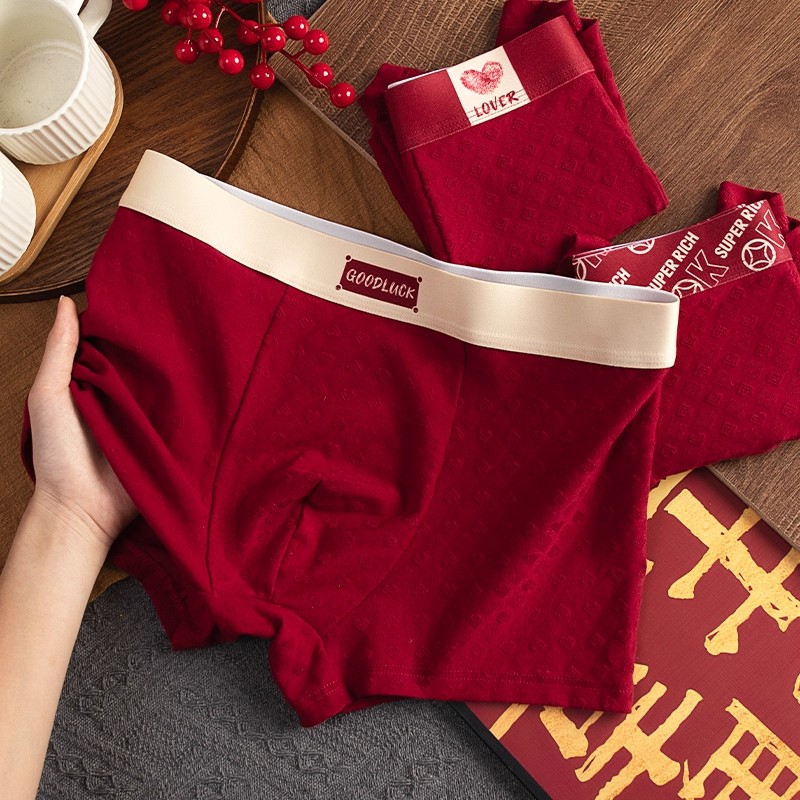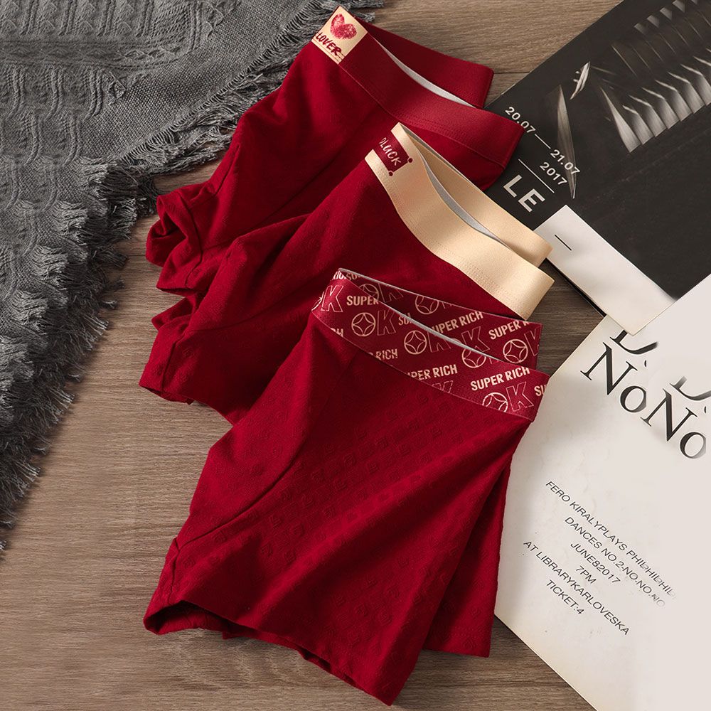 男士内裤本命年大红色鸿运舒适四角裤纯棉秋冬抗菌裆男生平角裤