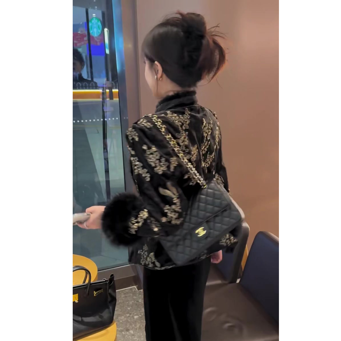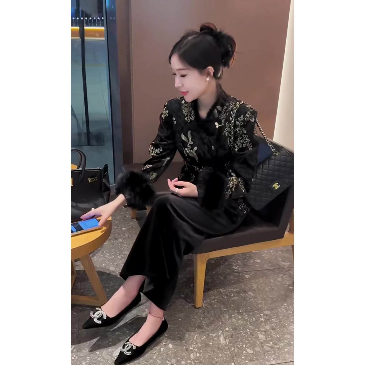 时尚欧货气质套装女秋冬新款立领刺绣毛毛休闲外套+丝绒半身裙