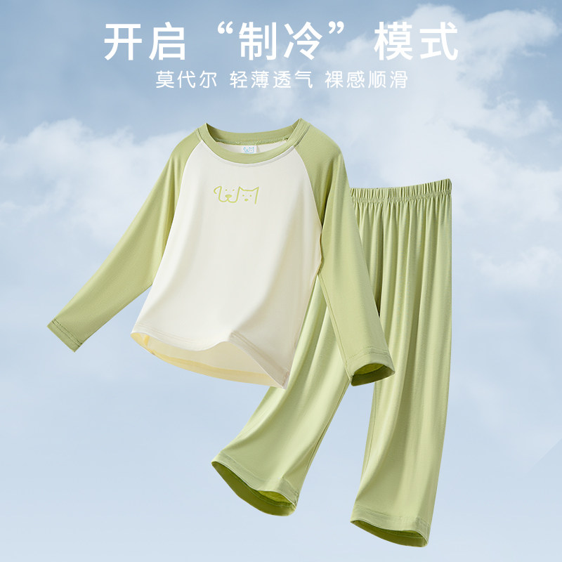 春夏款儿童睡衣莫代尔男童家居服套装男孩空调服女童大童儿童薄款