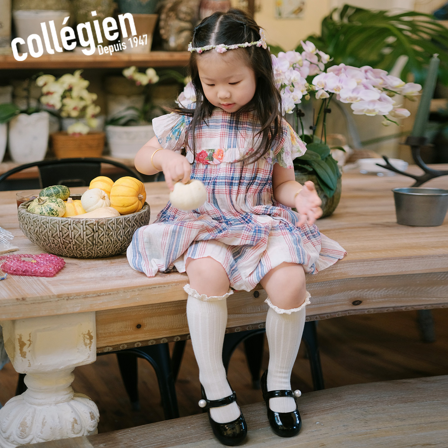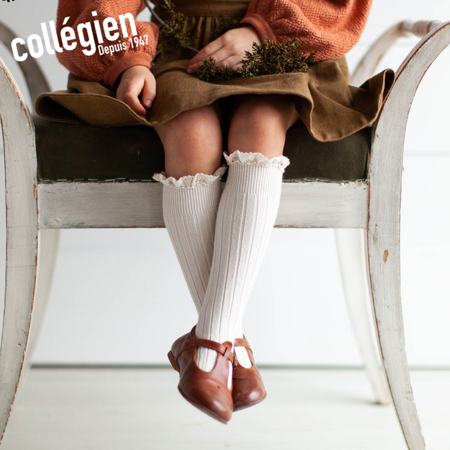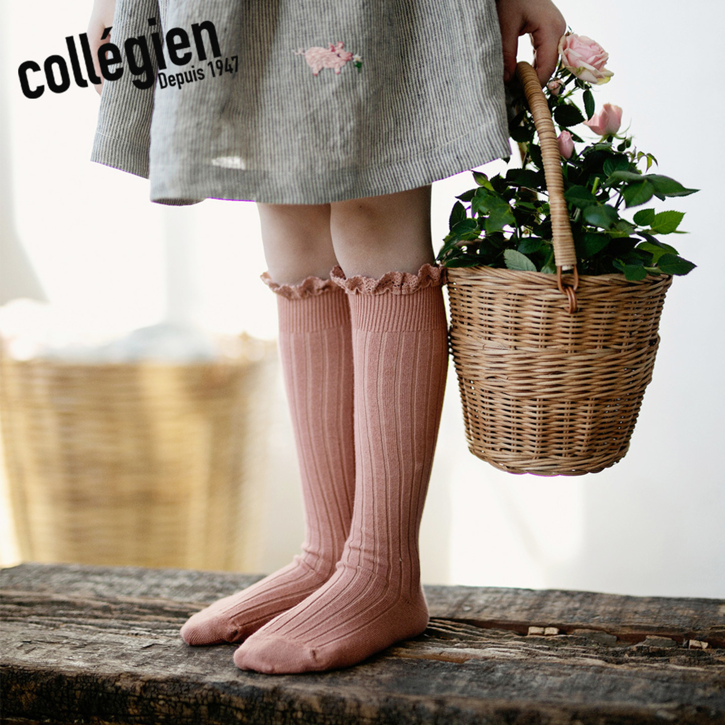 Collegien女童袜子春秋埃及长绒棉蕾丝花边公主中筒袜女宝宝袜子