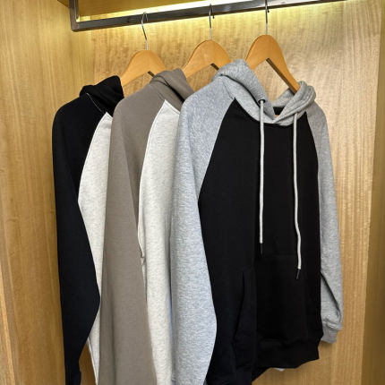 350克落肩插肩袖拼接棉质连帽套头卫衣潮流宽松上衣春秋休闲外套