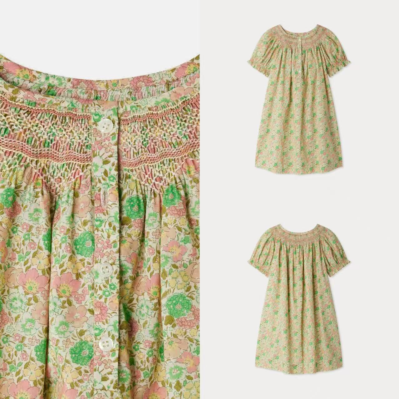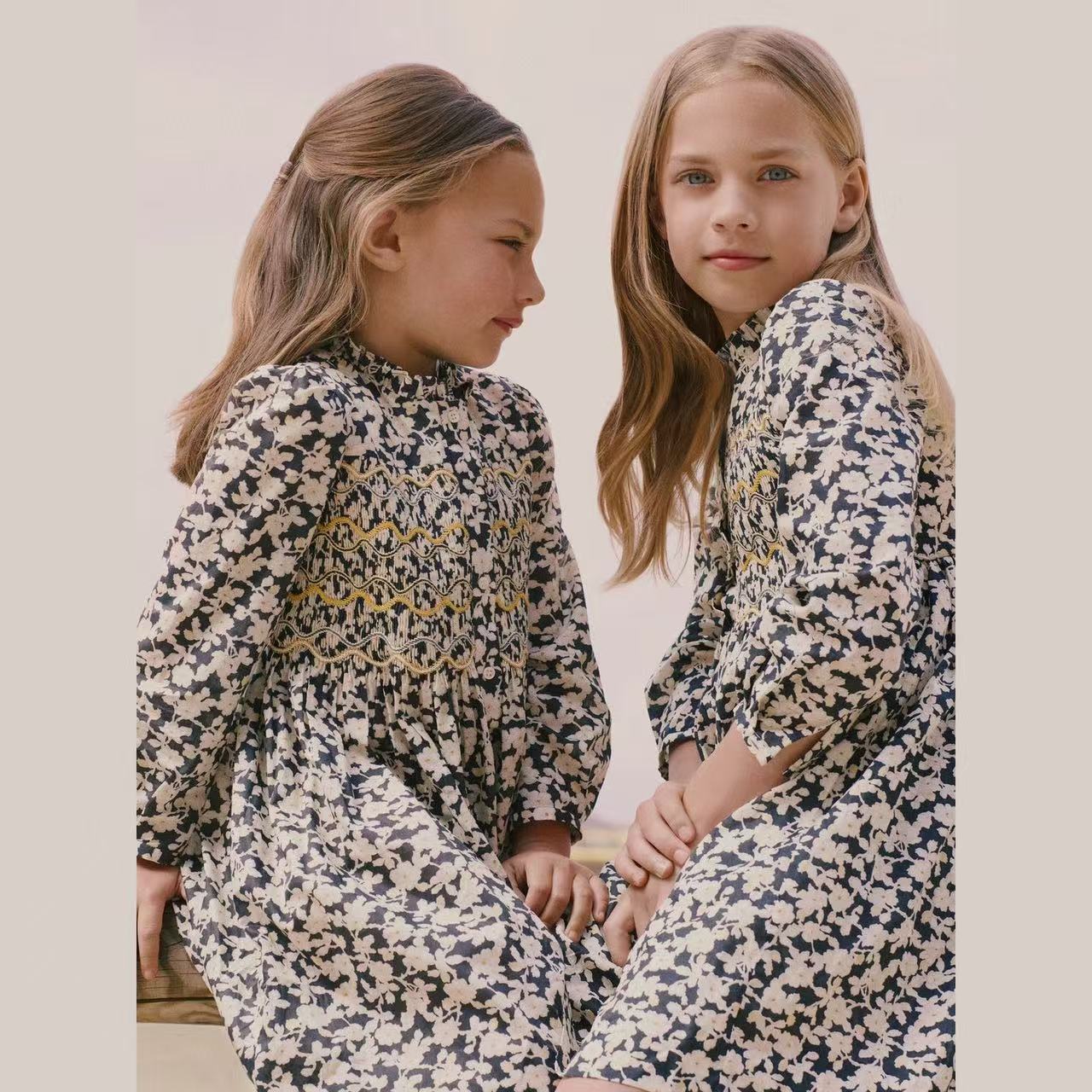 部分现货Bonpoint童装25秋冬印花女童A字连衣裙打揽碎花长袖休闲