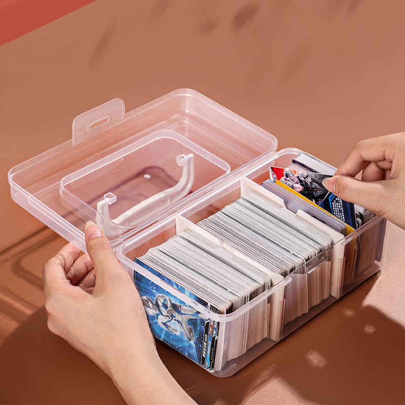 卡片分格收纳盒儿童游戏卡片扑克牌卡册大容量透明防尘带盖小卡盒