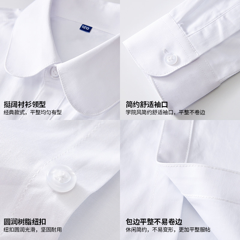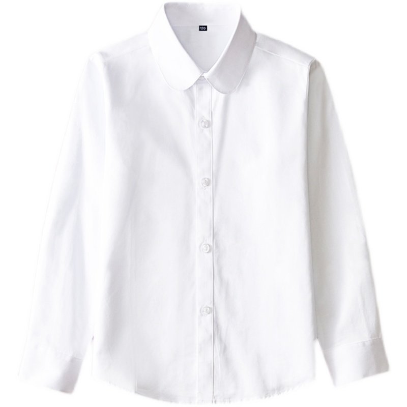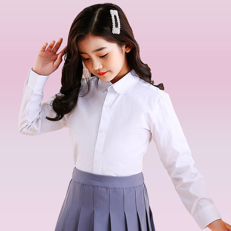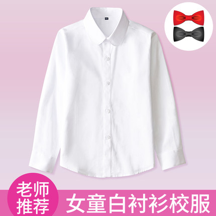 女童纯棉白衬衫春秋小学生女孩校服儿童长袖白色衬衣中大童校园款