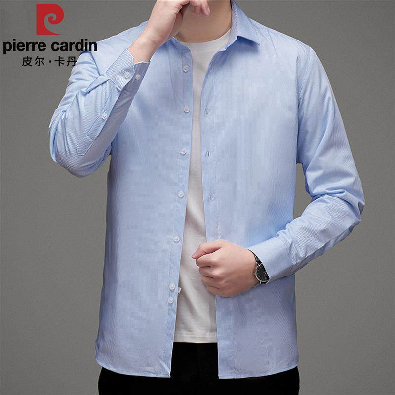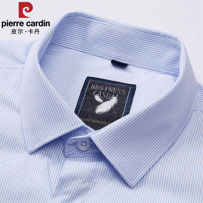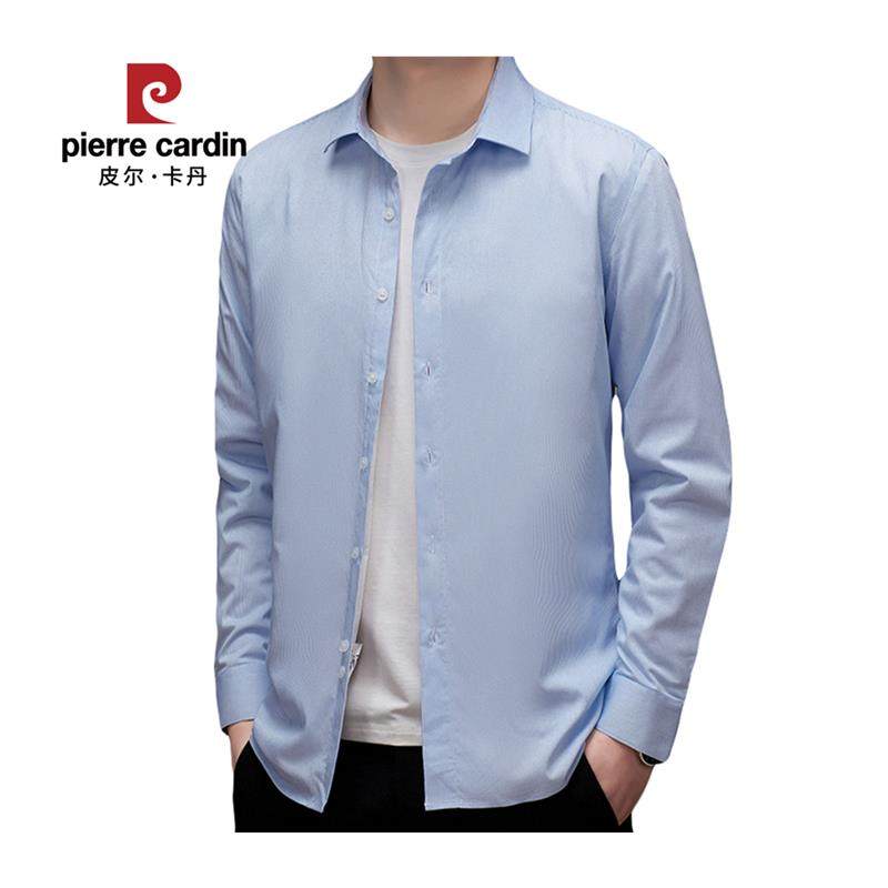 皮尔卡丹冬季羽绒衬衫男士长袖白色上衣休闲加厚保暖外套免烫衬衣