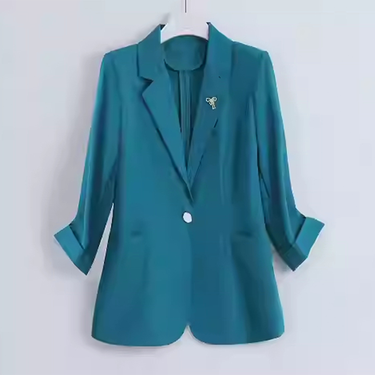 拉夏贝尔夏季薄款翻边袖小西装外套女七分袖休闲百搭防晒西服上衣