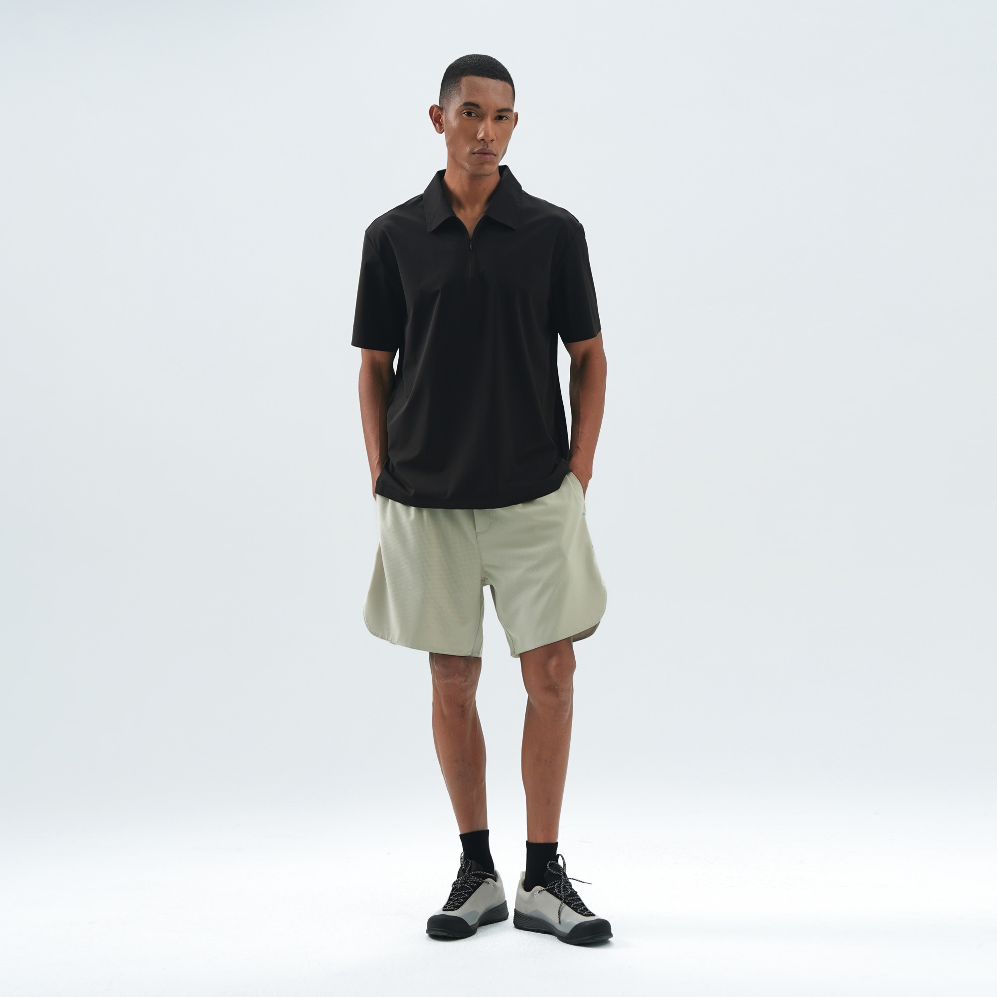bdpowerup夏季轻量梭织短裤男撞色反光设计微网眼运动宽松四分裤