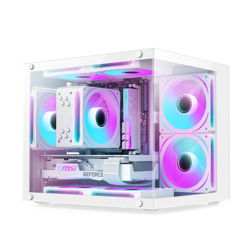 航嘉百盛T400海景房机箱M-ATX电脑DIY白色游戏台式主机全侧透水冷