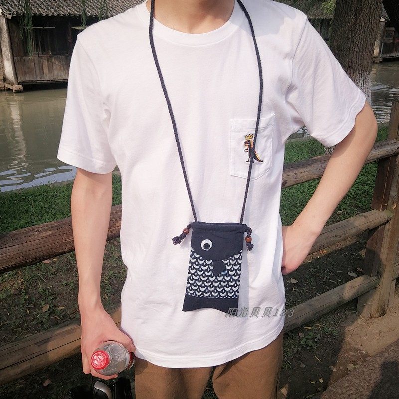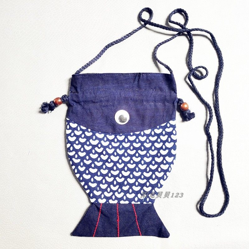 乌镇特色 手工蓝印花布袋 抽带包 复古斜挎包 手机包 全棉复古风