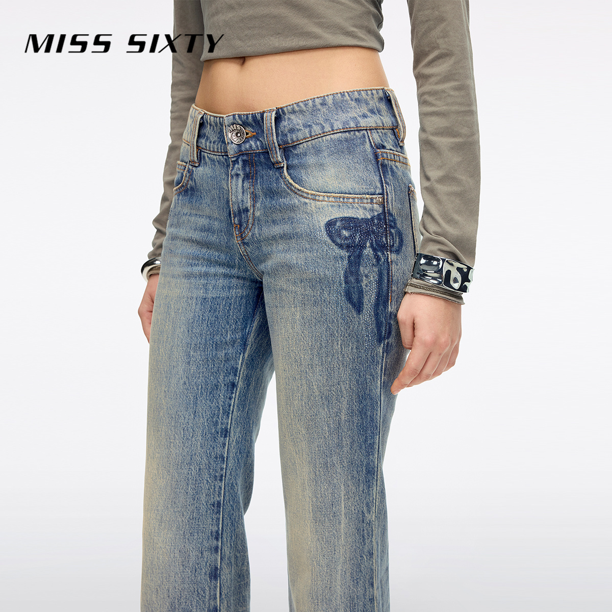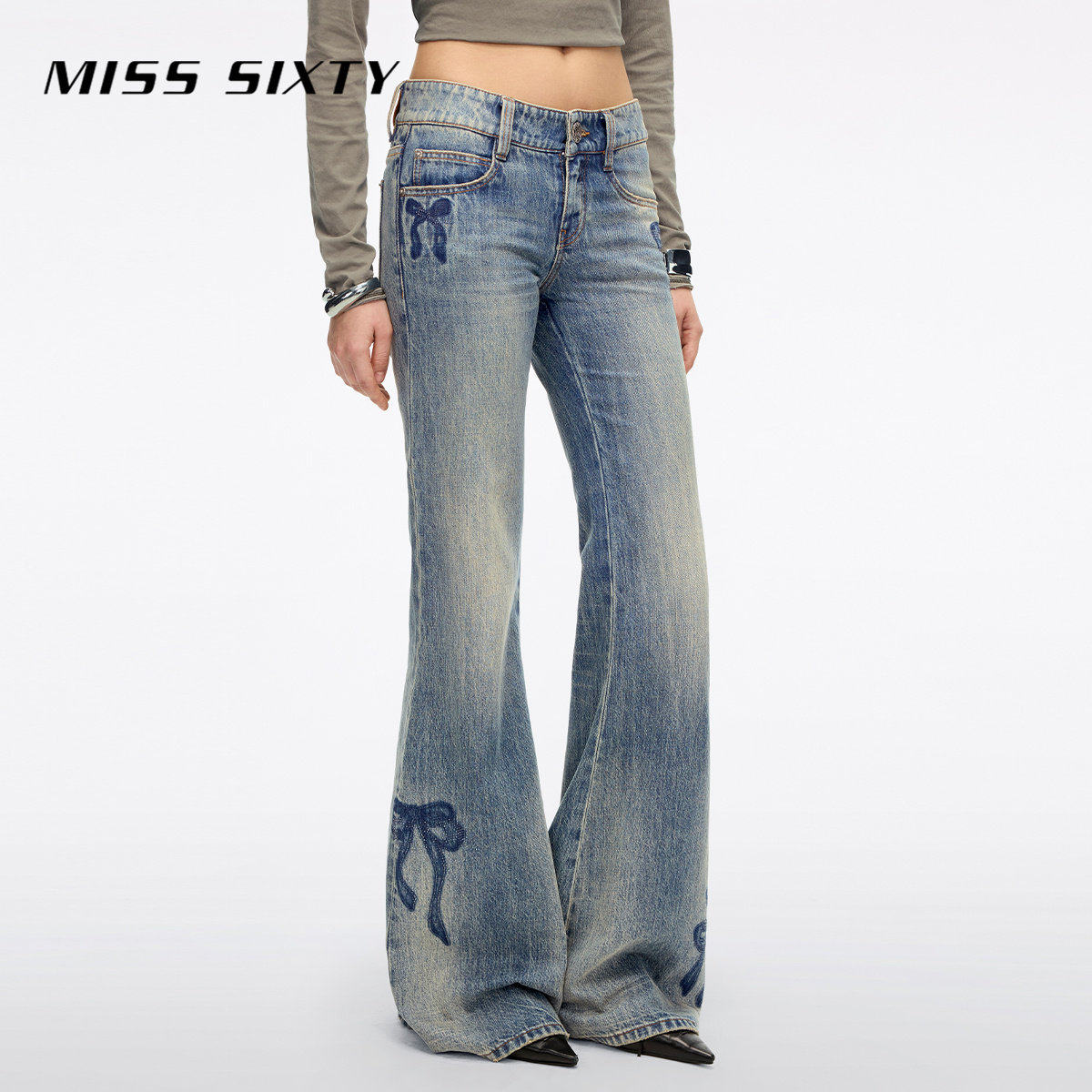 【闪耀派对】 Miss Sixty2026春季新款牛仔裤女蝴蝶结烫钻喇叭裤