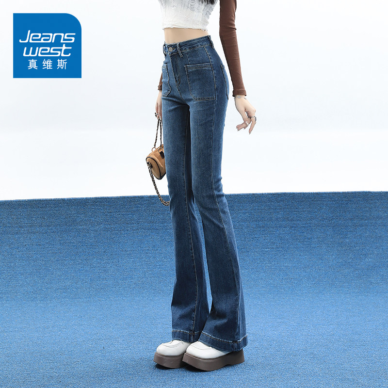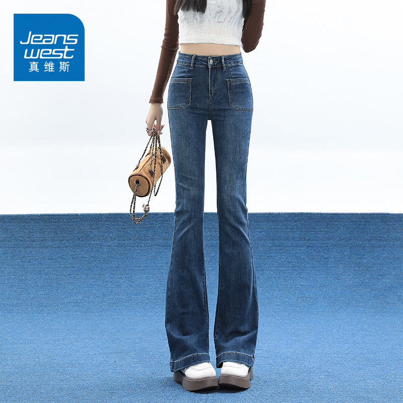 KZ真维斯春季高腰提臀微喇叭牛仔裤子女款高个子宽松阔腿加长裤潮