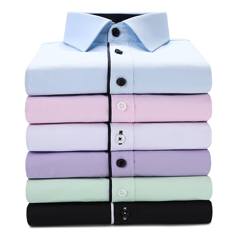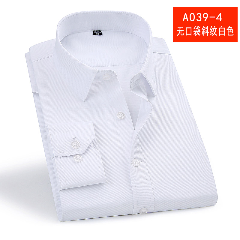 春季无口袋长袖衬衫男商务职业工装斜纹款浅蓝色衬衣寸男衫工作服