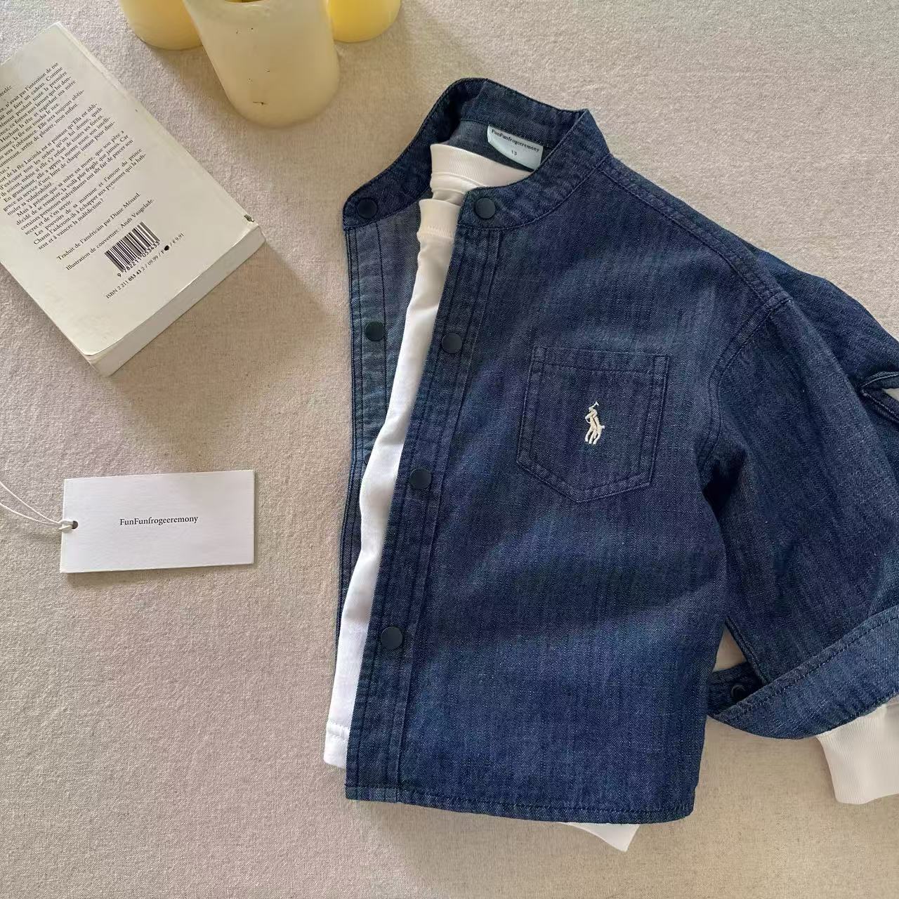 儿童软牛仔衬衣秋季2025新款男女童纯色上衣长袖宝宝衬衫外套洋气