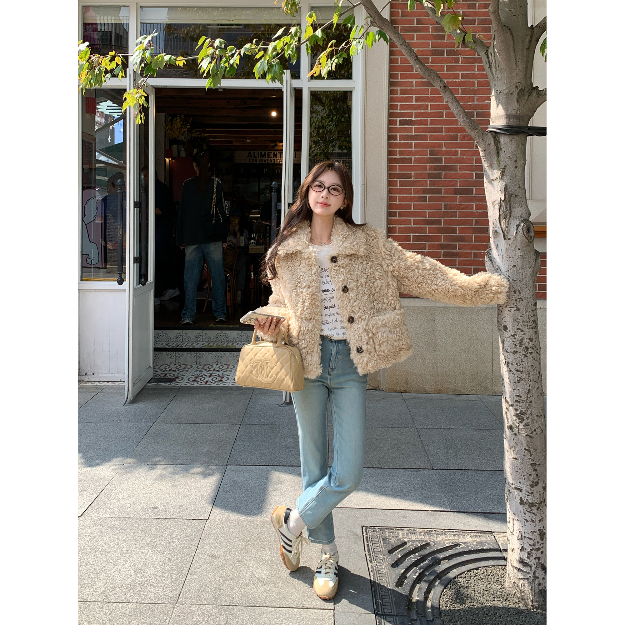 夏天家卷毛泰迪熊短款羊羔毛外套
