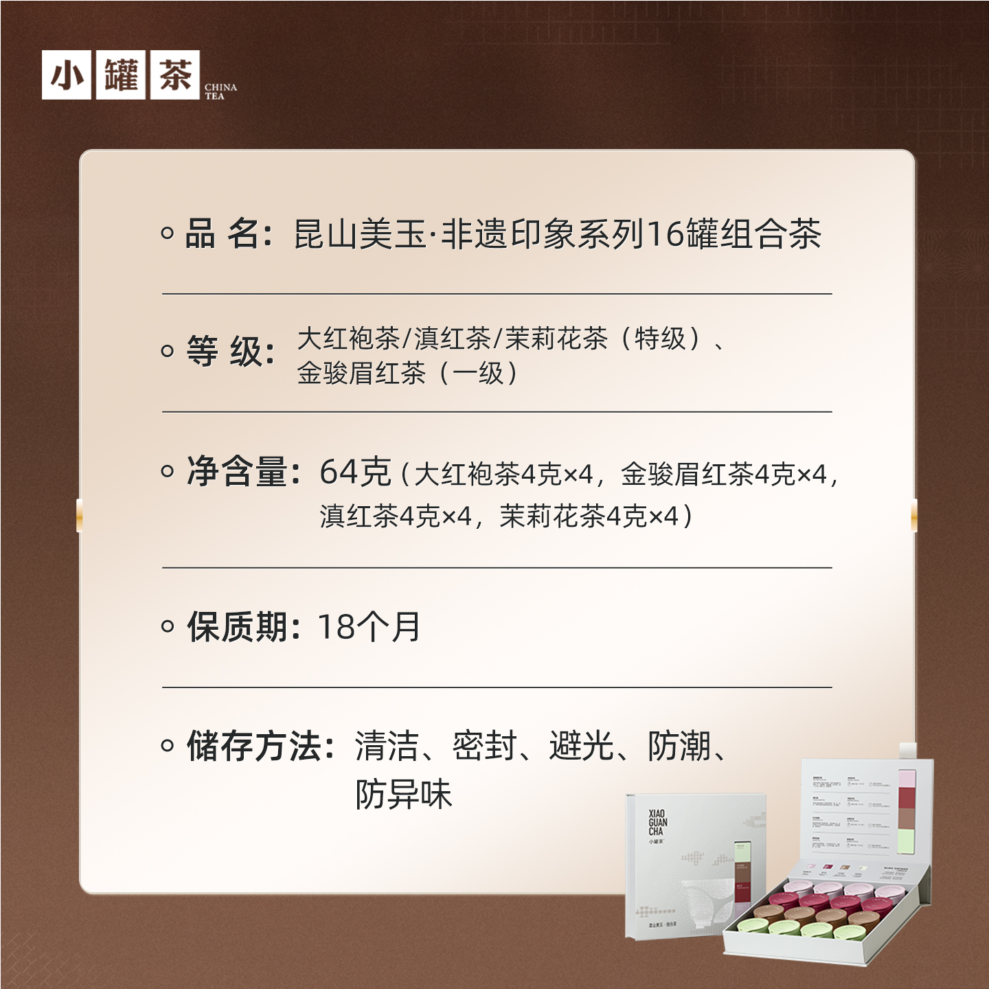 小罐茶昆山美玉非遗印象系列16罐组合金骏眉红茶滇红茶叶礼盒装
