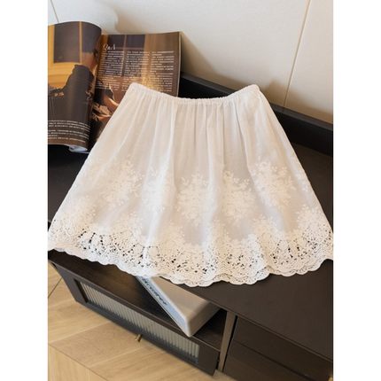 法式甜美镂空蕾丝裙屁帘短裙大码女装胖mm秋冬洋气叠穿罩裙半身裙