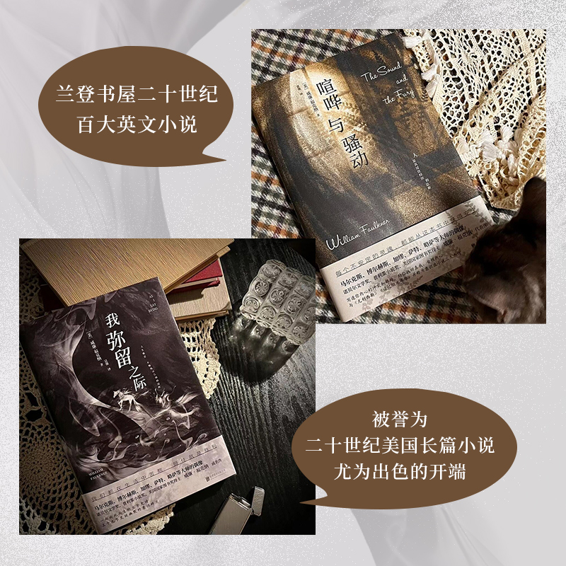 诺奖得主福克纳文学史诗系列全2册:喧哗与骚动+我弥留之际(余华、莫言、马尔克斯、博尔赫斯的偶像!诺贝尔文学奖、普利策小说