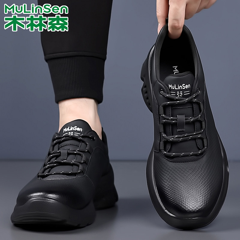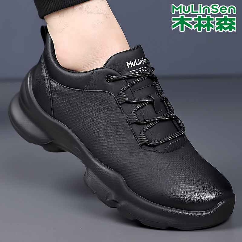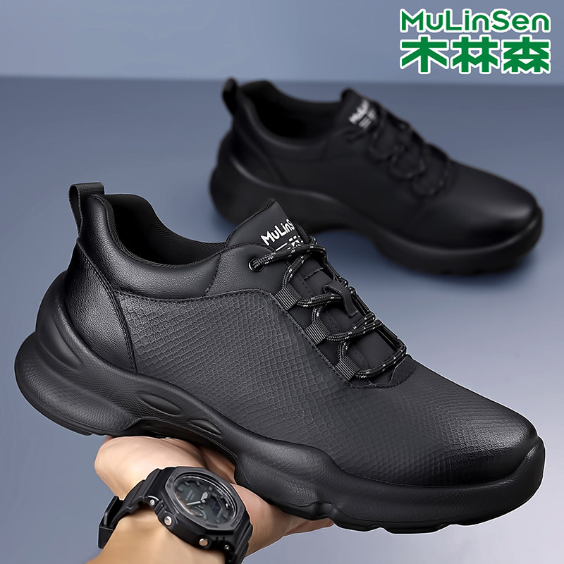 木林森男鞋2025新款头层牛皮透气休闲皮鞋男士时尚软底防水运动鞋