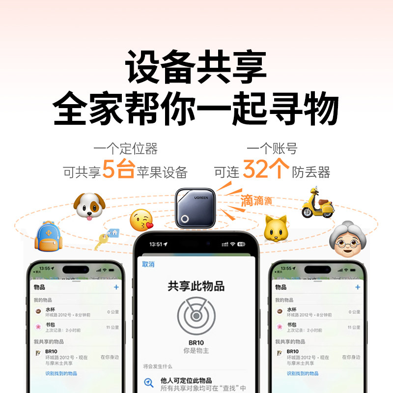 绿联定位器tag适用苹果平替跟踪宠物老人儿童防走丢电动车钱包旅行箱书包防丢失自行车汽车钥匙扣防丢神器