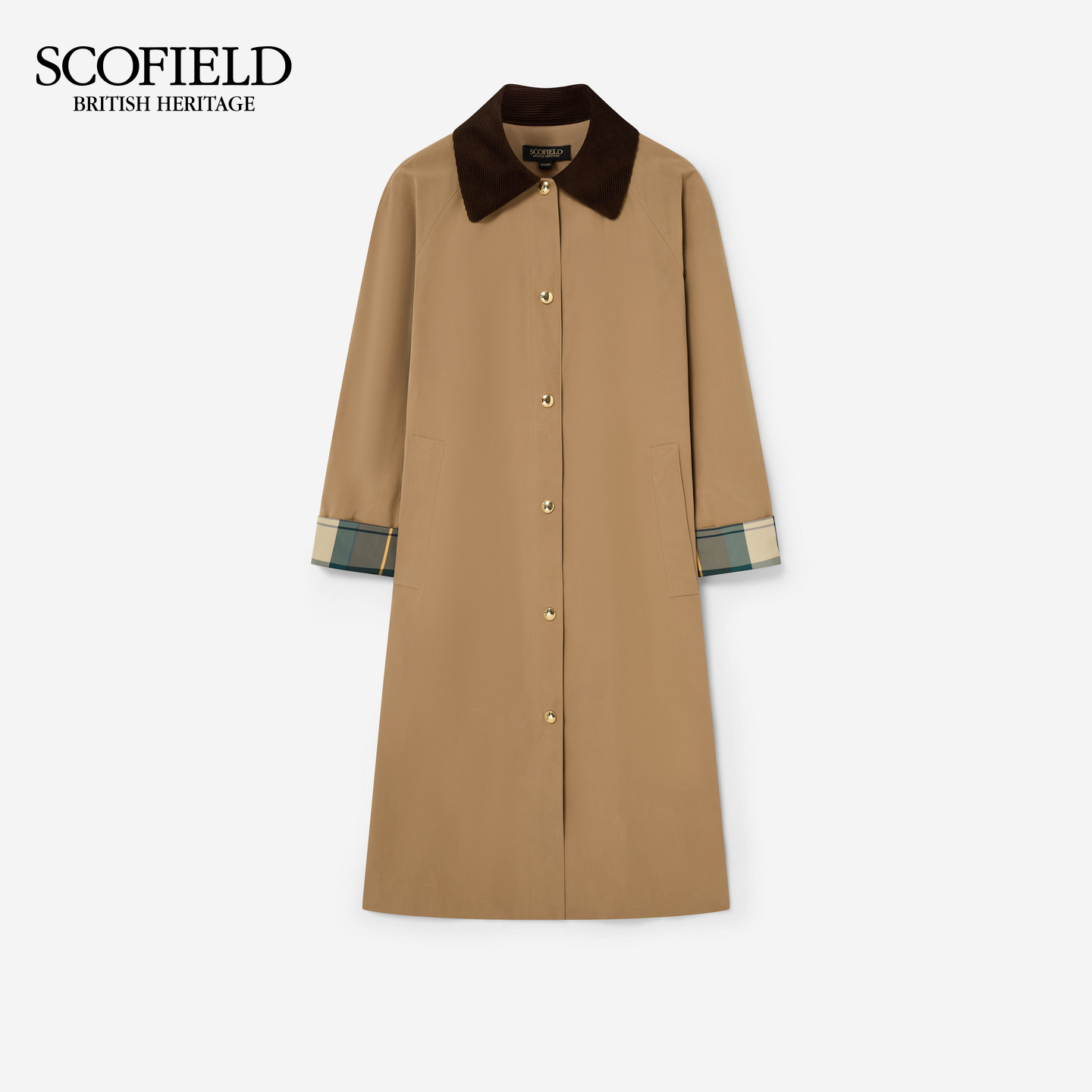 【含棉】Scofield女装复古风灯芯绒翻领风衣格纹袖口2026春季新品