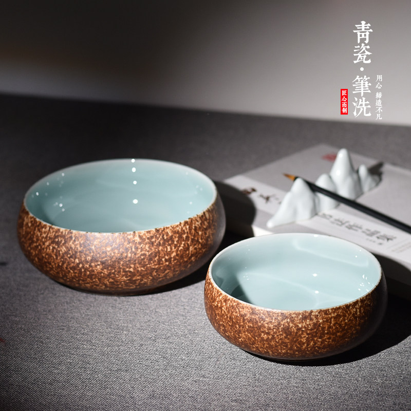龙泉青瓷陶瓷汝窑茶洗大号笔洗笔缸功夫茶具茶道配件特大家用小号