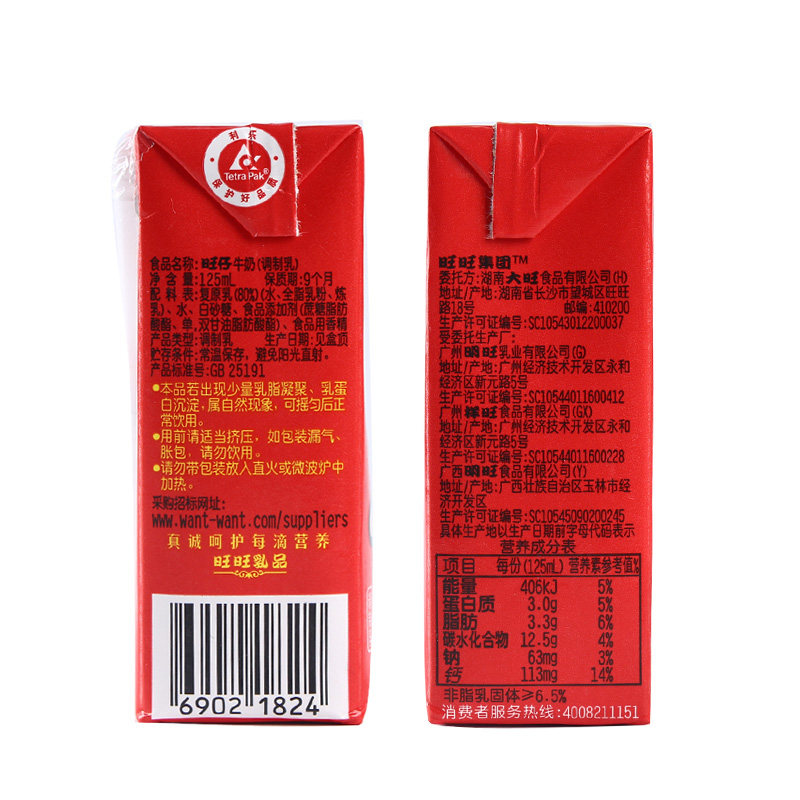旺旺旺仔牛奶125ml*16盒装经典早餐乳酸饮料品整箱儿童成长牛奶甜