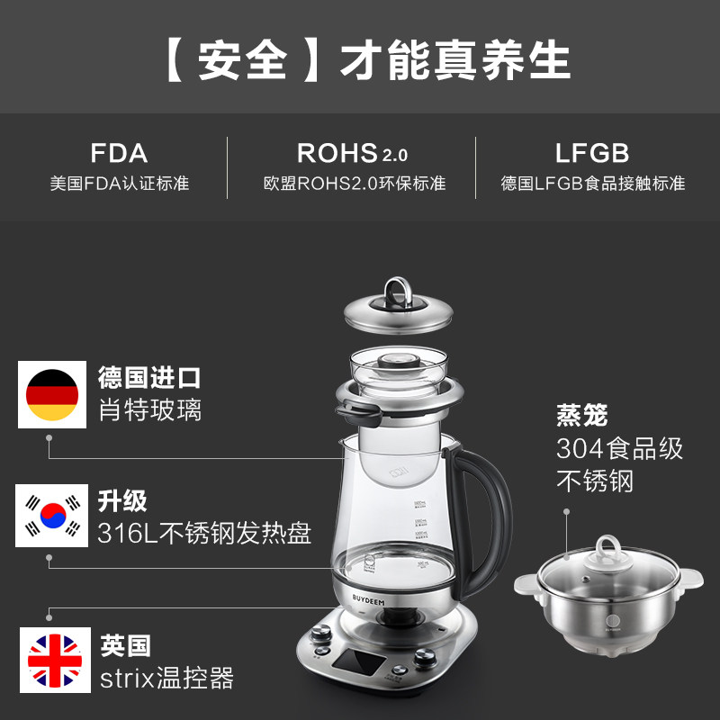 【旗舰款】北鼎养生壶k187炖煮壶不锈钢家用多功能加厚玻璃煮茶壶