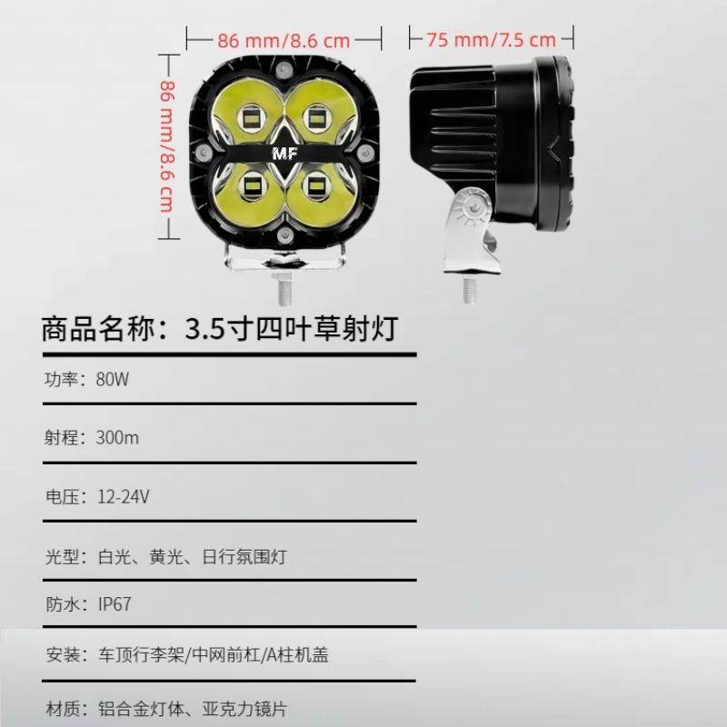 汽车中网led探照灯bj40a柱灯改装越野车灯机盖射灯A柱辅助灯烈马