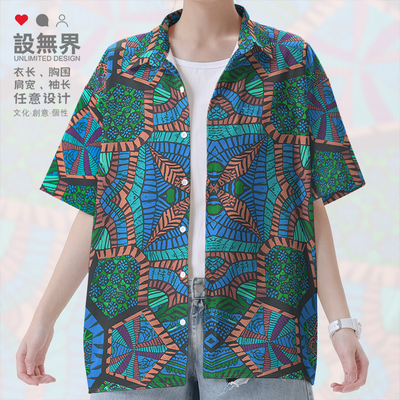 非洲纹理图案拼接特色迷幻图纹趣味短袖衬衫男装女装0018设 无界