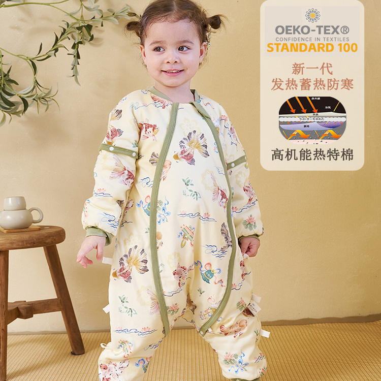 安旦儿童睡袋秋冬款夹棉加厚防踢被宝宝恒温睡衣分腿保暖国风睡袋