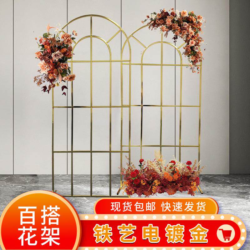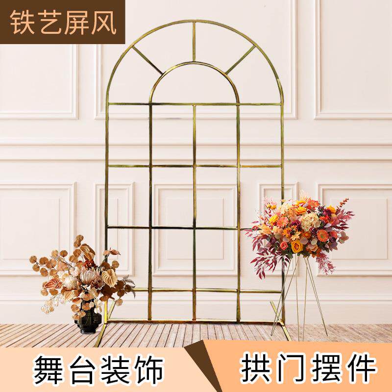 2020镀金新款婚庆道具铁艺屏风婚礼舞台布置装饰背景迎宾区摆件