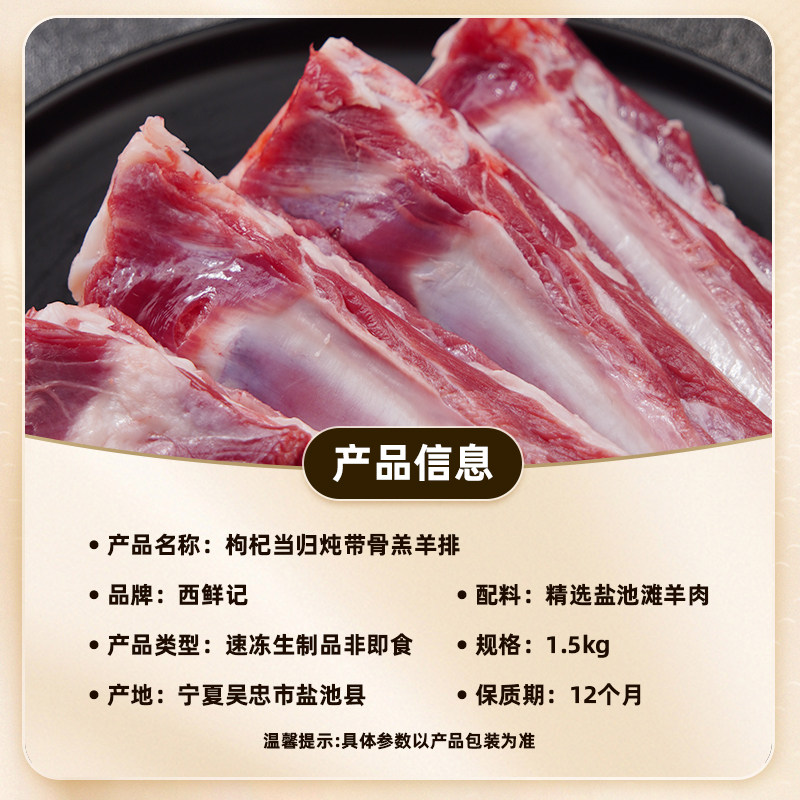 【臻选】西鲜记宁夏盐池滩羊枸杞当归炖带骨羊排肋排羊肉羊骨汤料