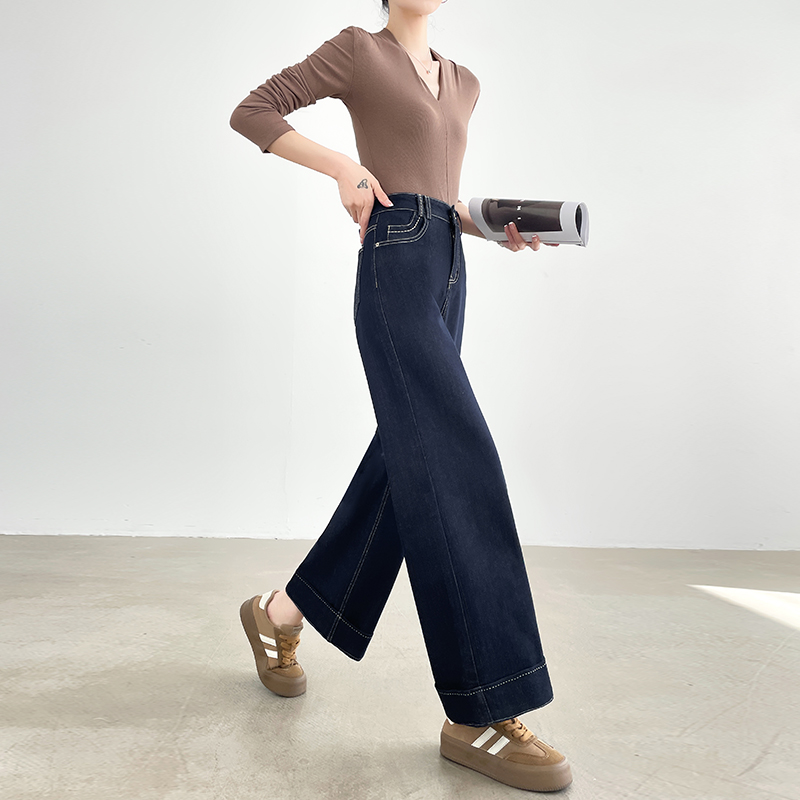 丹宁蓝九分牛仔阔腿裤女夏季新款高腰宽松垂感百搭小个子直筒裤子