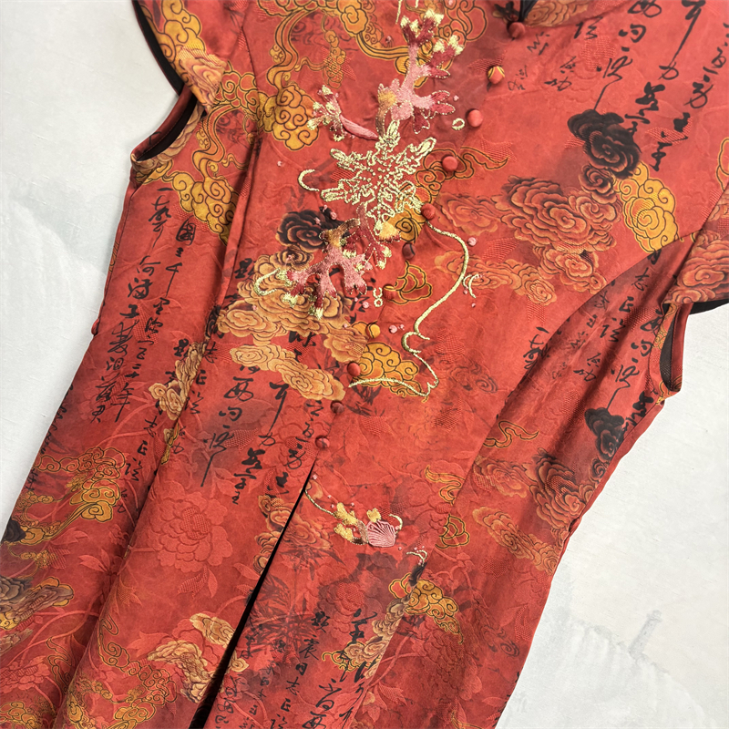 满分桑蚕丝重工刺绣香云纱短袖连衣裙25夏新中国风气质显瘦旗袍裙