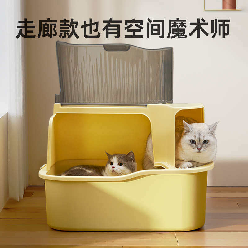 月饼喵│萌尾猫砂盆全封闭走廊式防外溅超大号猫砂盆特大猫厕所