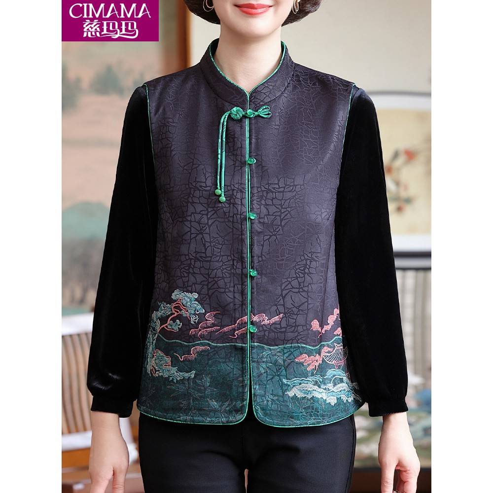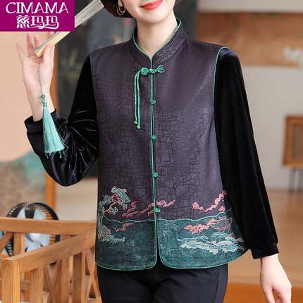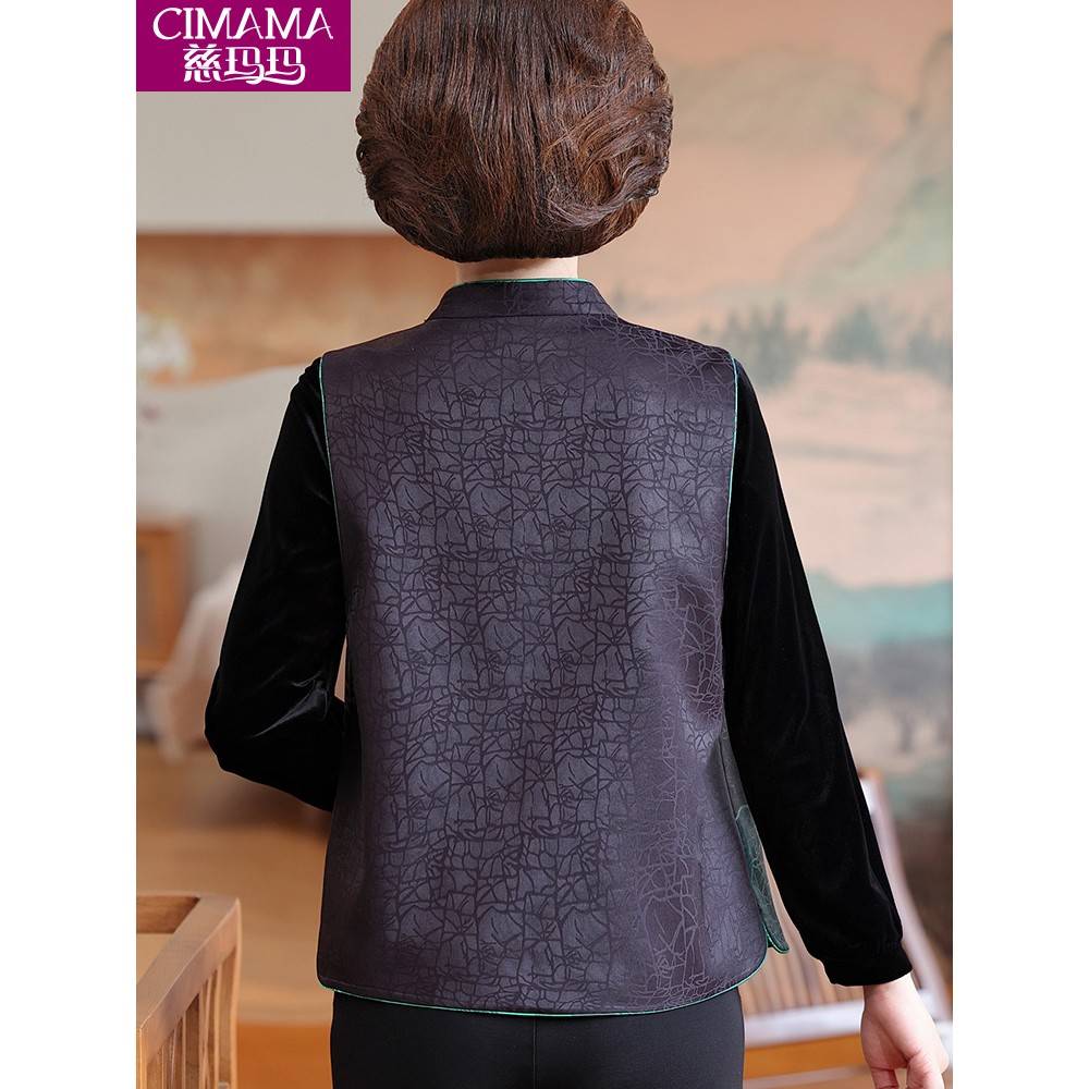 新中式妈妈秋装国风马甲两件套装中老年人女春秋坎肩外套高贵马夹